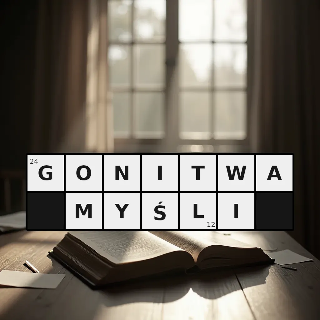 Słowo „gonitwa myśli” ma 12 znaków (bez spacji i łączników).