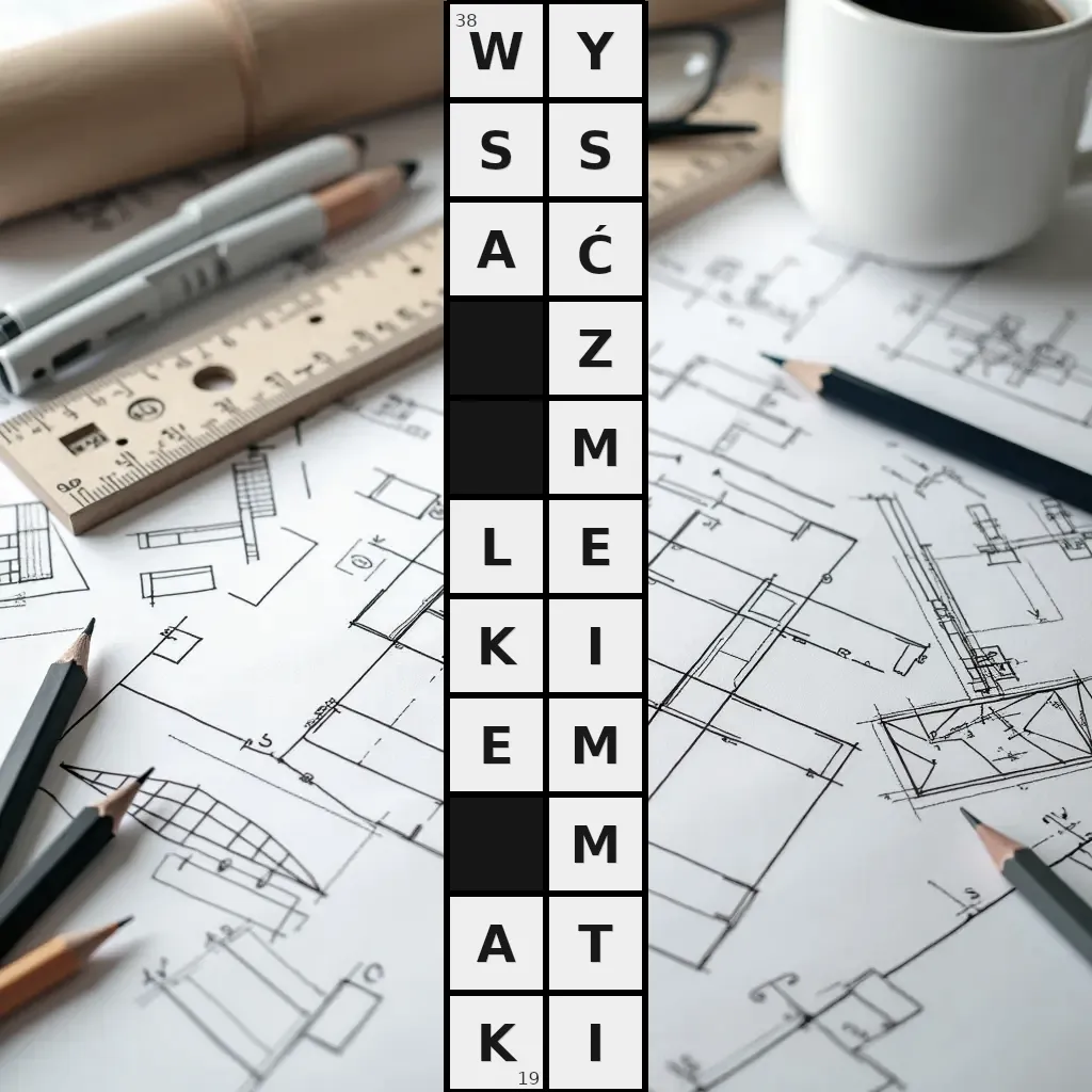 Zawiera litery: A, A, E, E, I, I, K, K, L, M, M, M, S, S, T, W, Y, Z, Ć