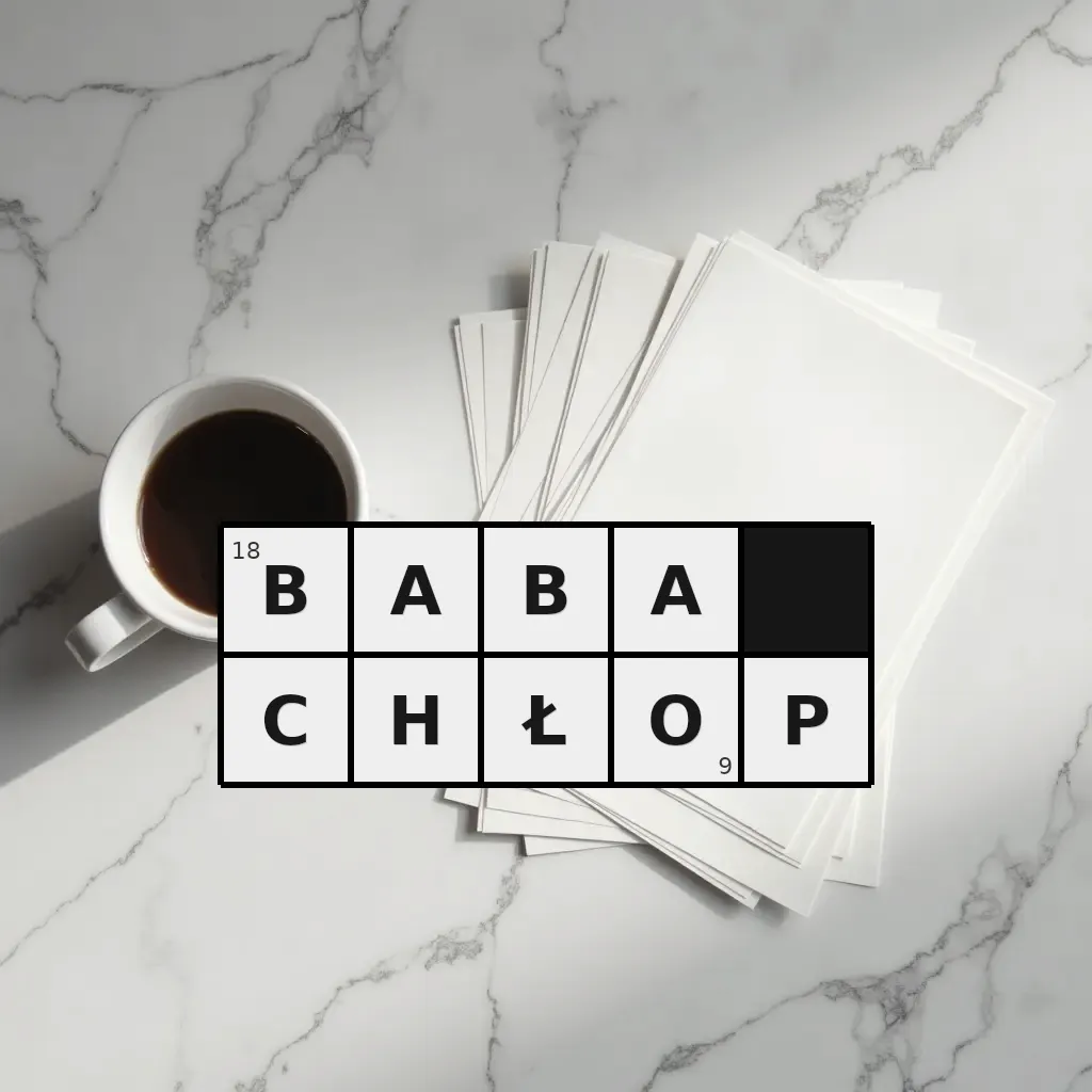 Słowo „baba-chłop” ma 9 znaków (bez spacji i łączników).