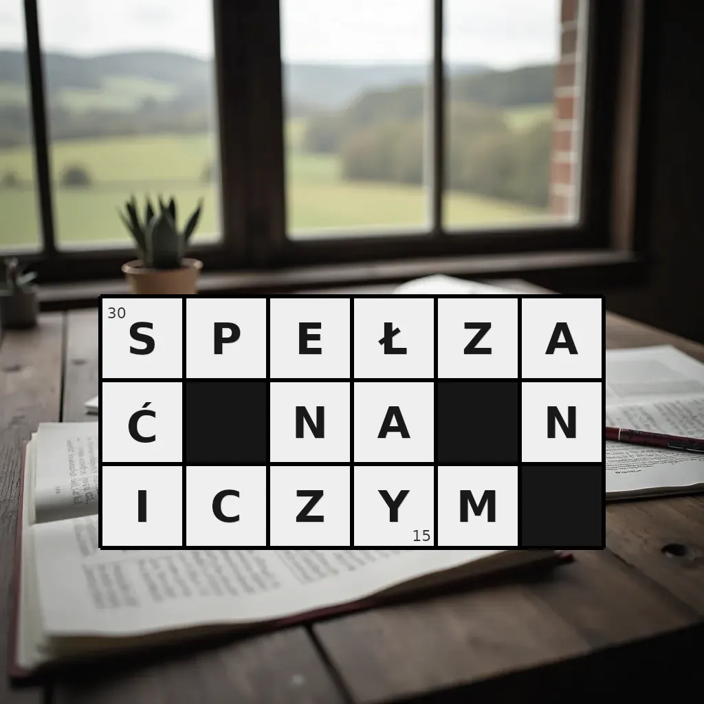 Słowo „spełzać na niczym” ma 15 znaków (bez spacji i łączników).