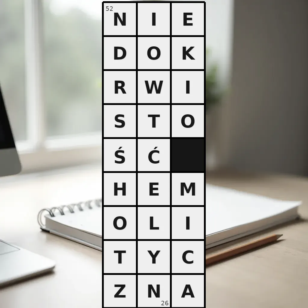 Słowo „niedokrwistość hemolityczna” ma 26 znaków (bez spacji i łączników).