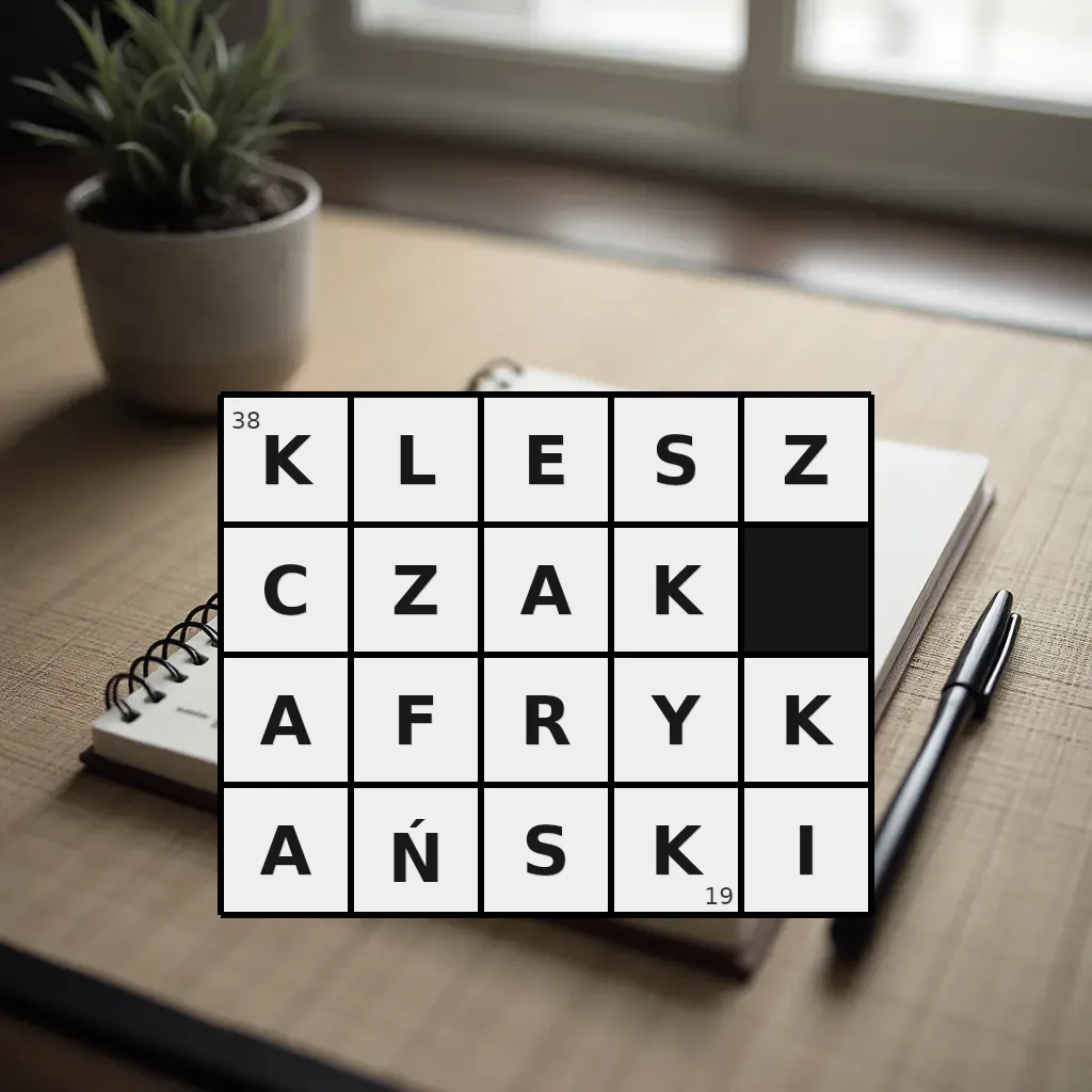 Słowo „kleszczak afrykański” ma 19 znaków (bez spacji i łączników).