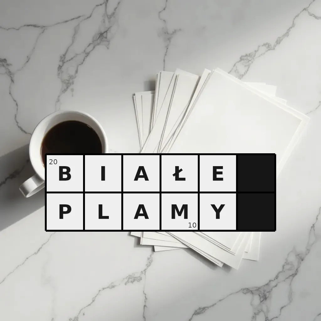 Słowo „białe plamy” ma 10 znaków (bez spacji i łączników).