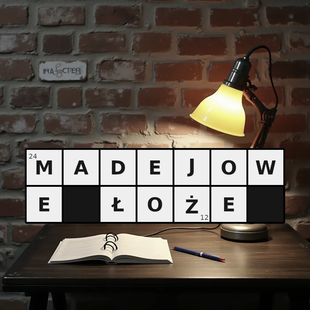 Słowo „madejowe łoże” ma 12 znaków (bez spacji i łączników).
