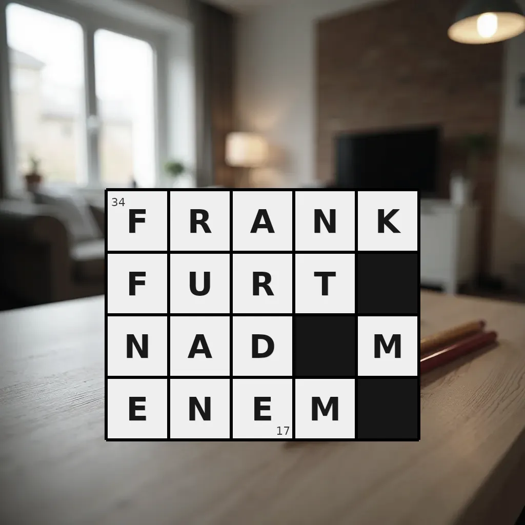 Słowo „frankfurt nad menem” ma 17 znaków (bez spacji i łączników).