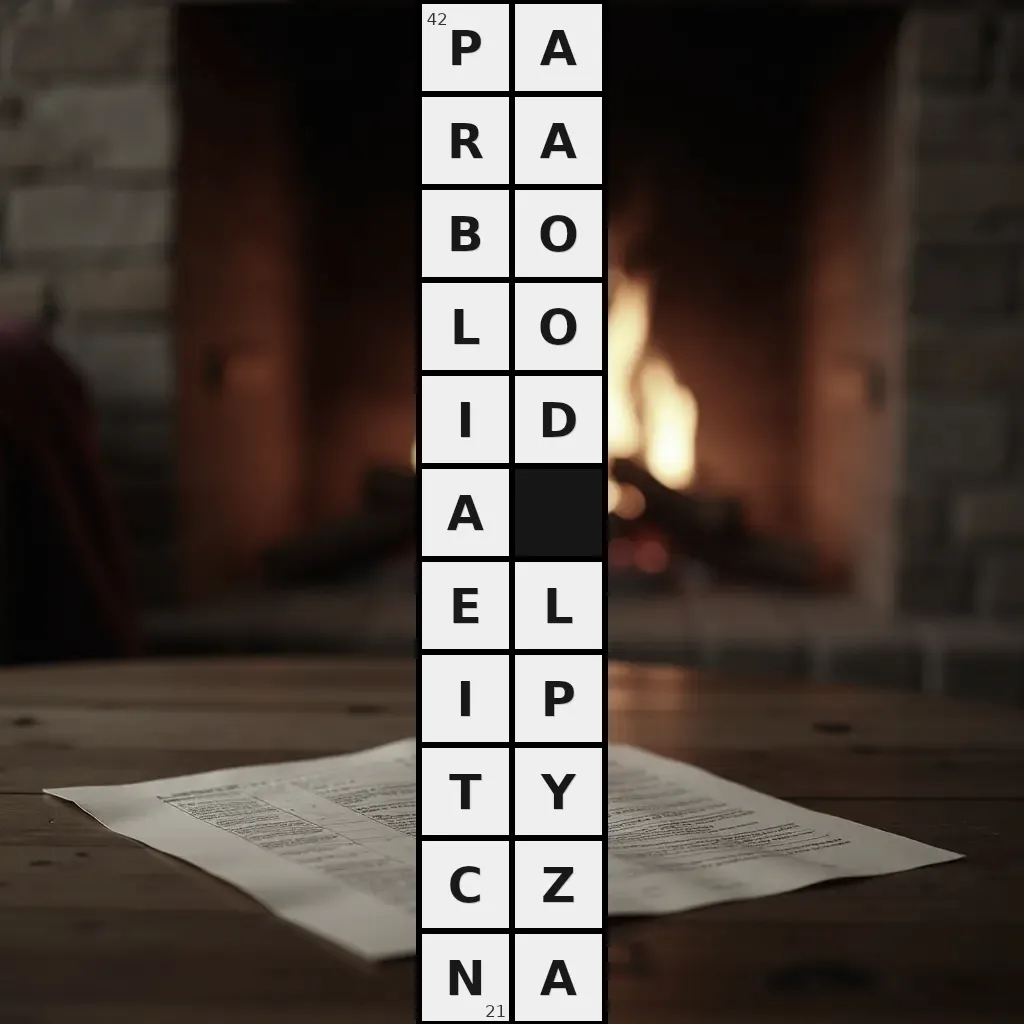 Zawiera litery: A, A, A, A, B, C, D, E, I, I, L, L, N, O, O, P, P, R, T, Y, Z