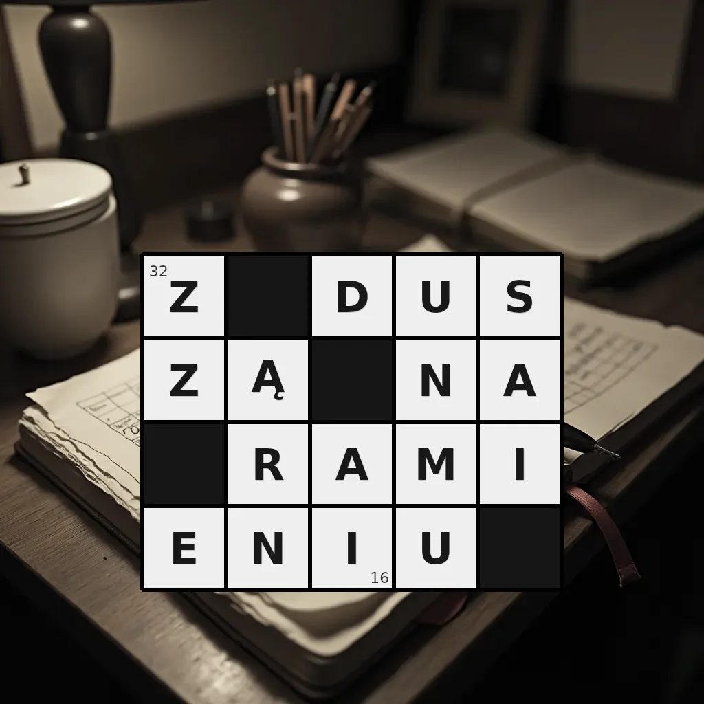 Zawiera litery: A, A, D, E, I, I, M, N, N, R, S, U, U, Z, Z, Ą