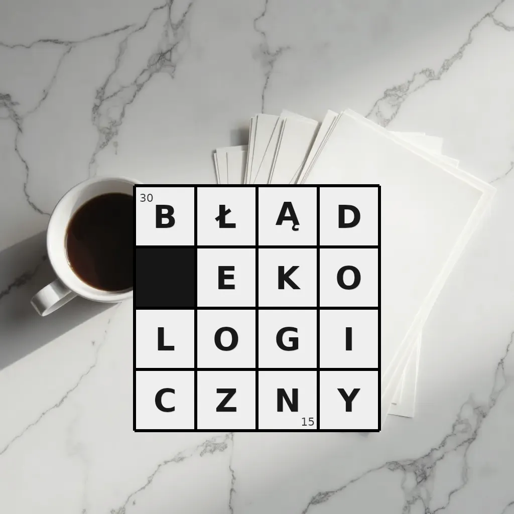 Słowo „błąd ekologiczny” ma 15 znaków (bez spacji i łączników).