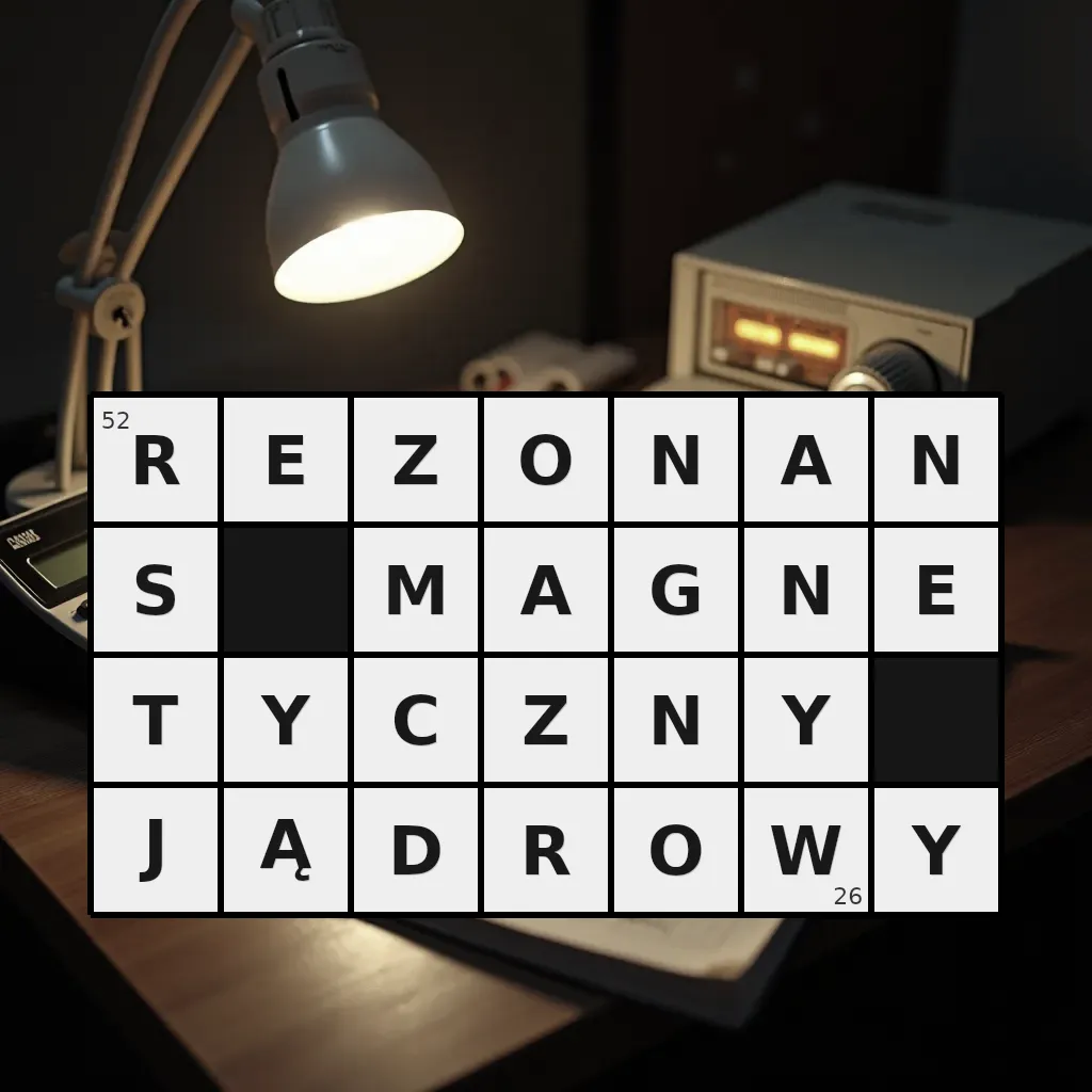 Słowo „rezonans magnetyczny jądrowy” ma 26 znaków (bez spacji i łączników).