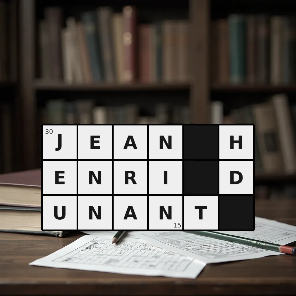Słowo „jean henri dunant” ma 15 znaków (bez spacji i łączników).