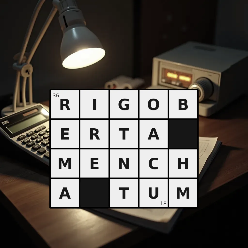 Słowo „rigoberta mencha tum” ma 18 znaków (bez spacji i łączników).