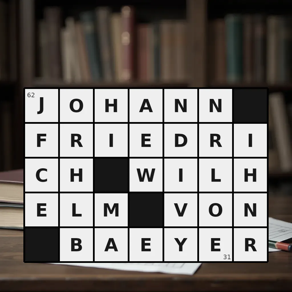 Słowo „johann friedrich wilhelm von baeyer” ma 31 znak (bez spacji i łączników).