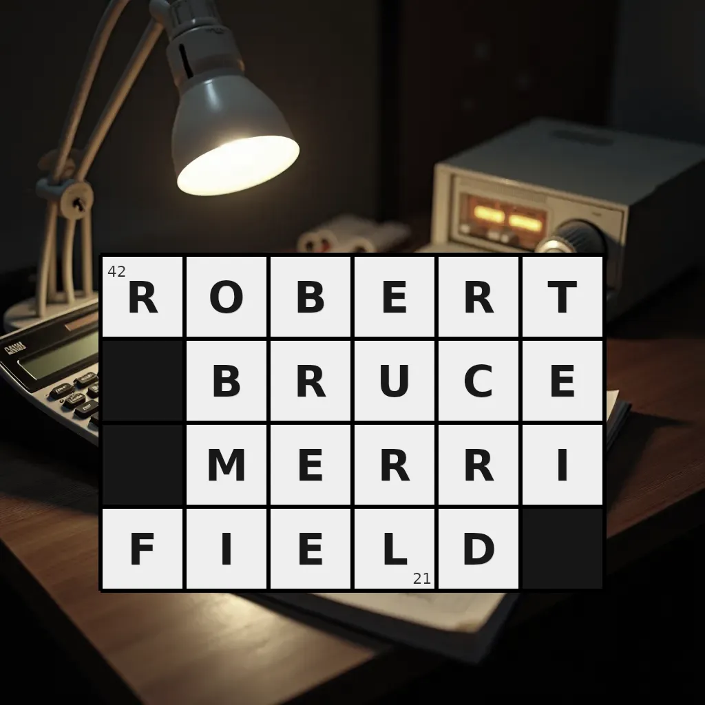 Słowo „robert bruce merrifield” ma 21 znak (bez spacji i łączników).
