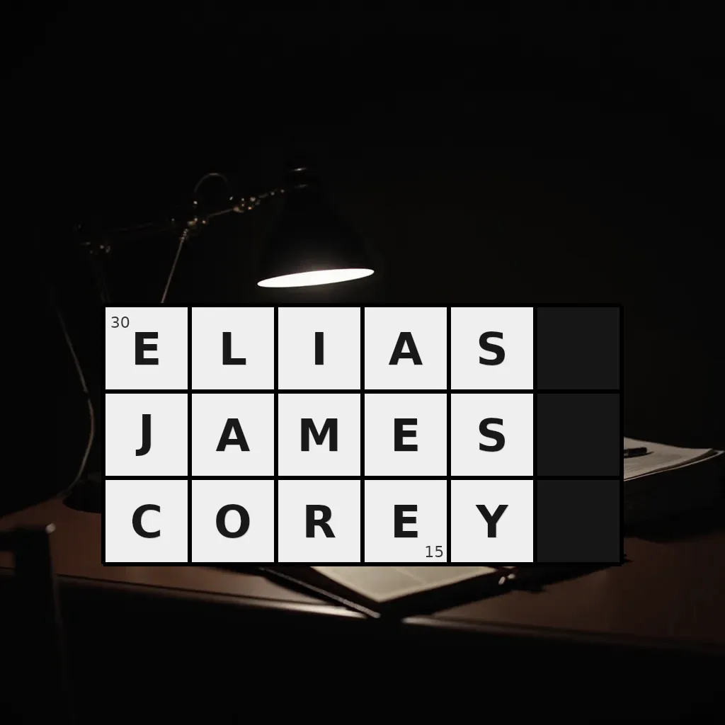 Słowo „elias james corey” ma 15 znaków (bez spacji i łączników).