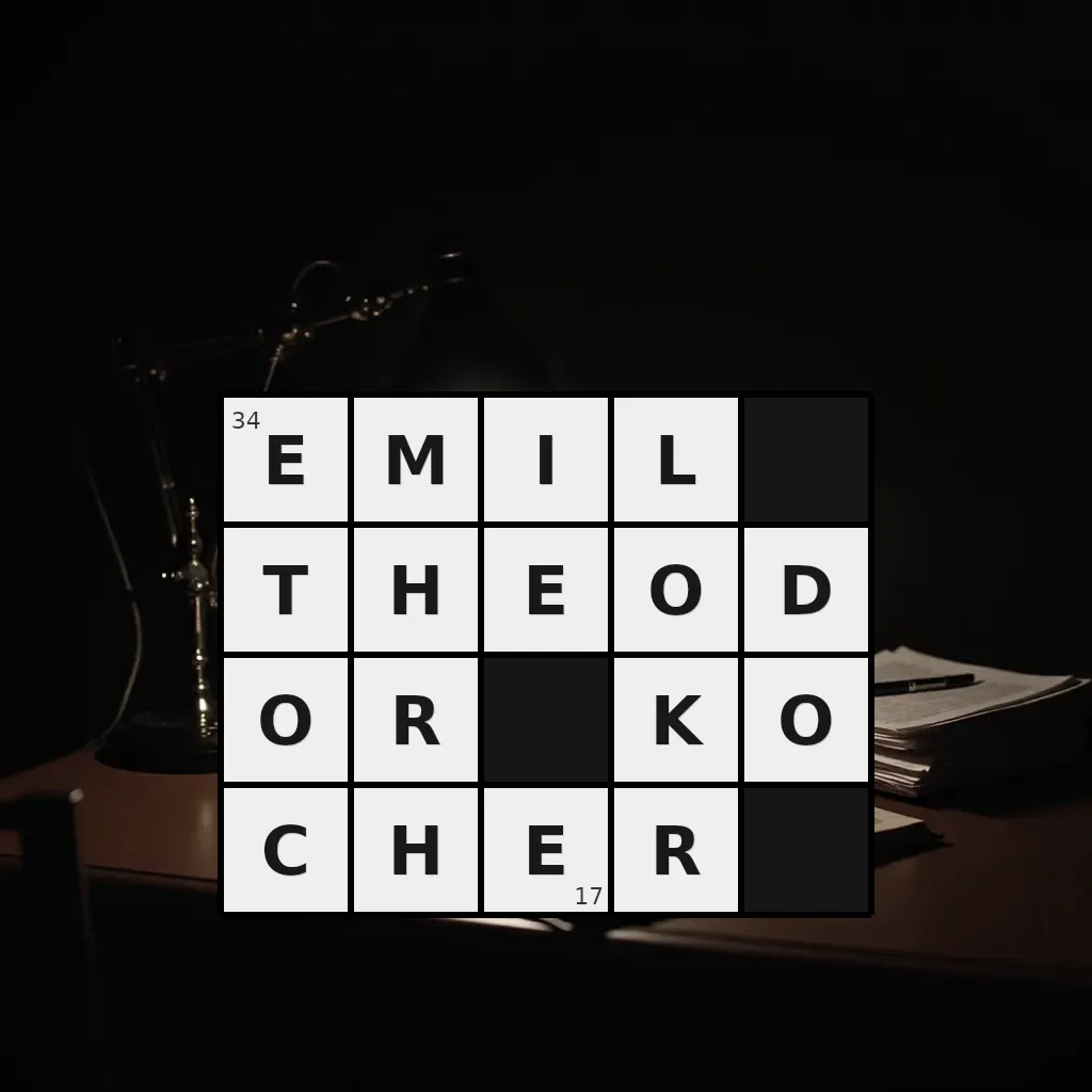 Słowo „emil theodor kocher” ma 17 znaków (bez spacji i łączników).