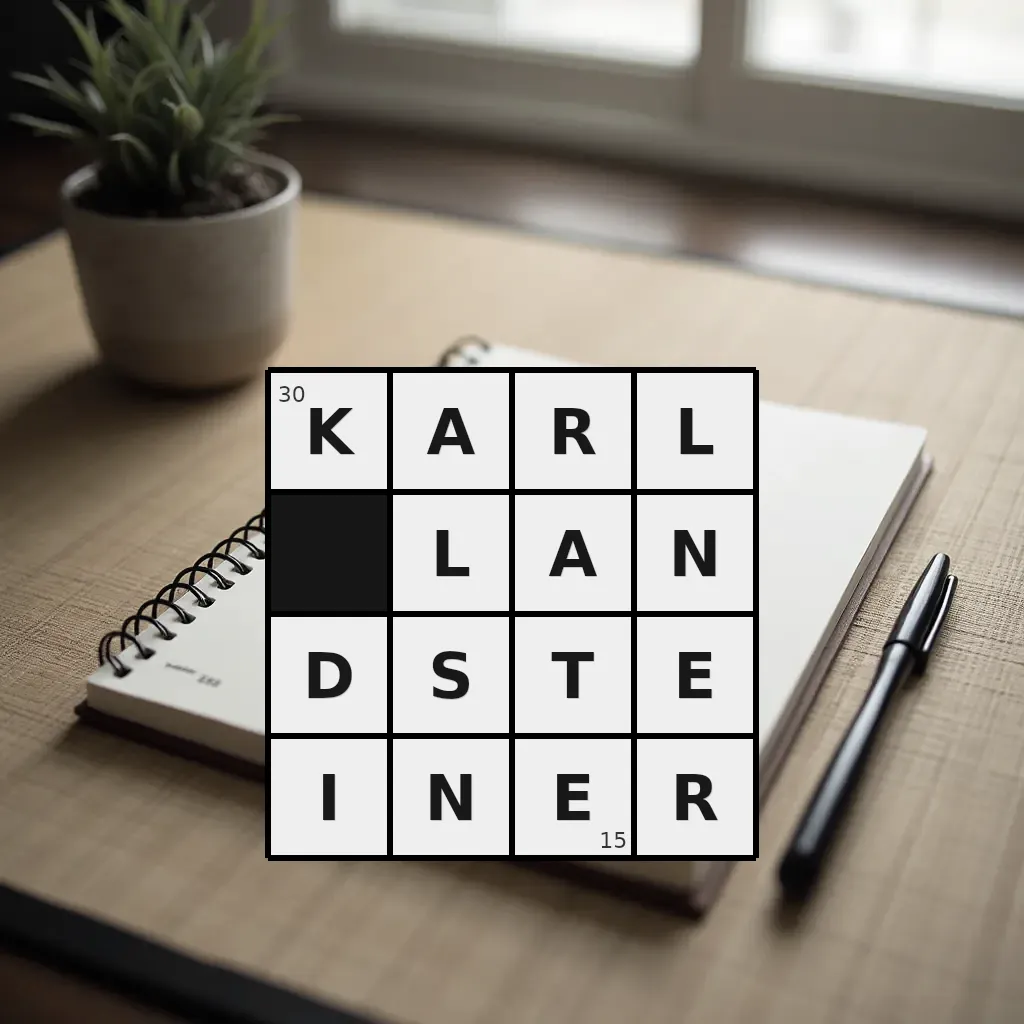 Słowo „karl landsteiner” ma 15 znaków (bez spacji i łączników).