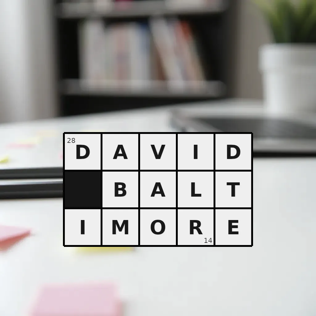 Słowo „david baltimore” ma 14 znaków (bez spacji i łączników).