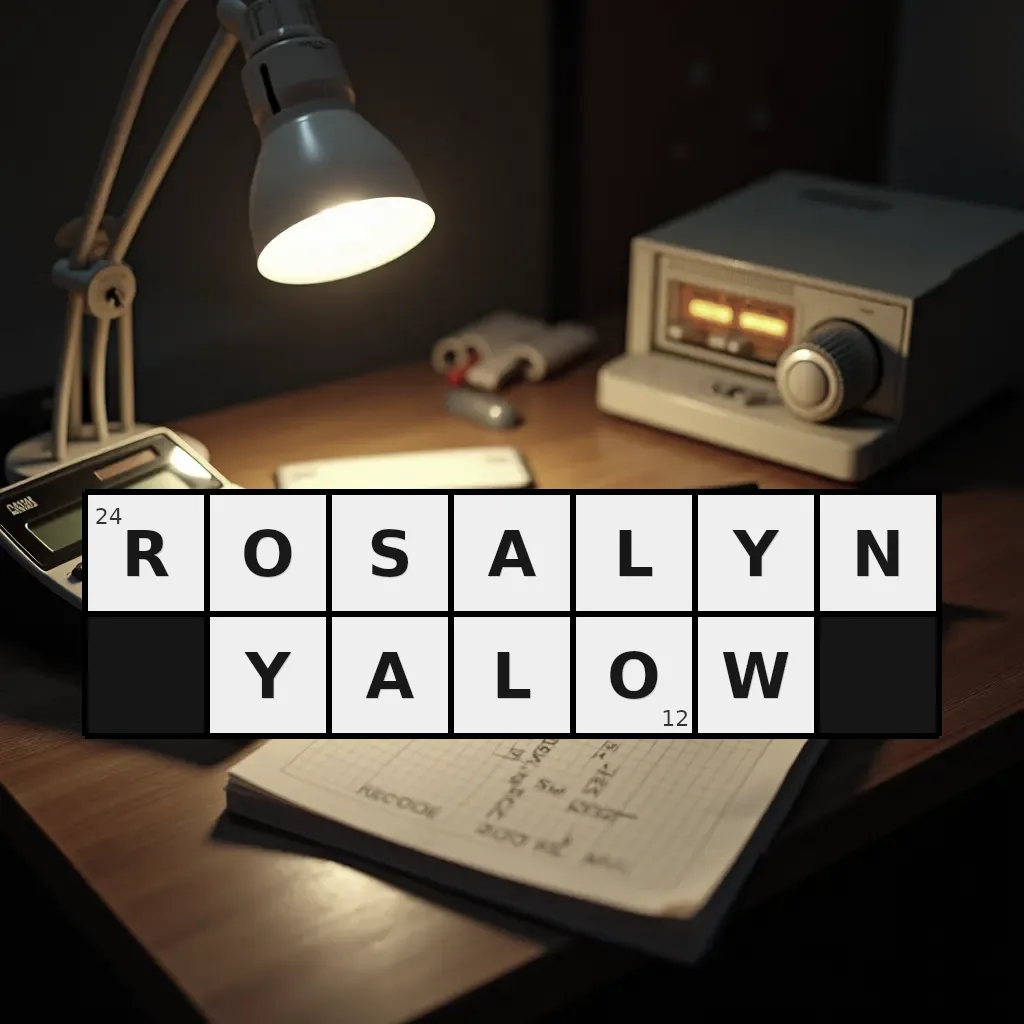 Słowo „rosalyn yalow” ma 12 znaków (bez spacji i łączników).