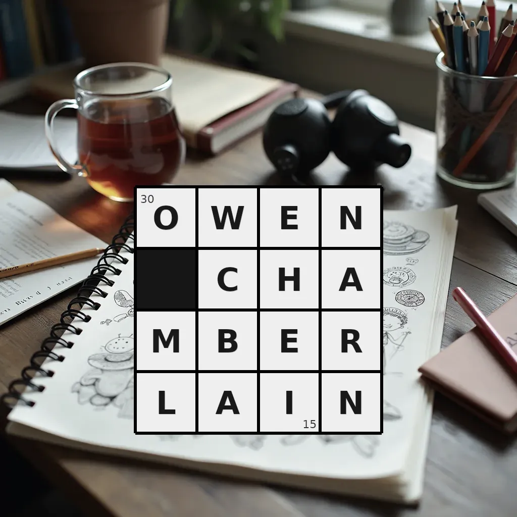 Słowo „owen chamberlain” ma 15 znaków (bez spacji i łączników).