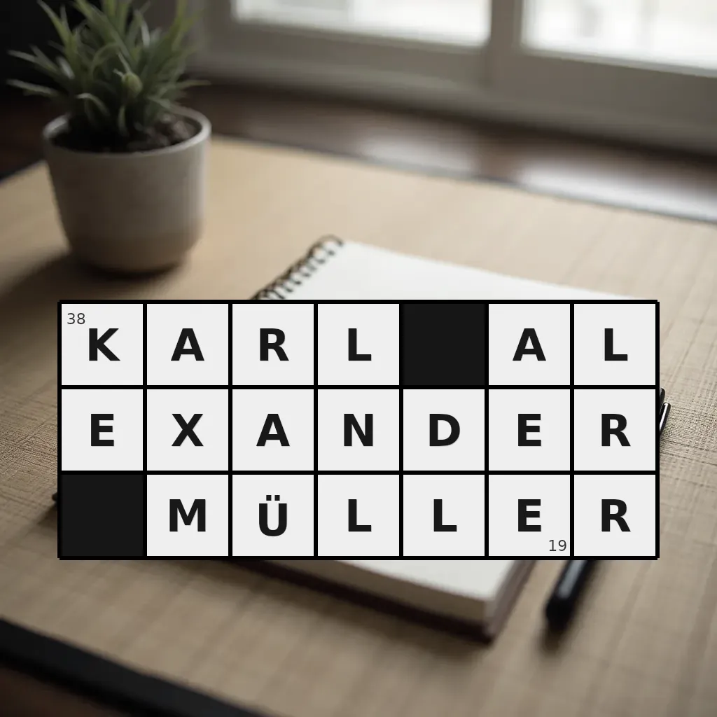 Słowo „karl alexander müller” ma 19 znaków (bez spacji i łączników).
