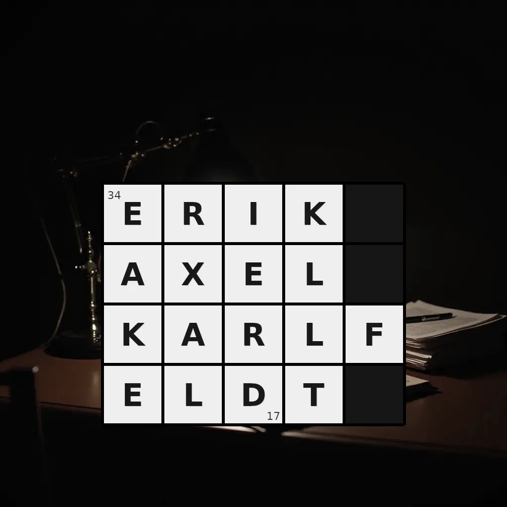 Słowo „erik axel karlfeldt” ma 17 znaków (bez spacji i łączników).