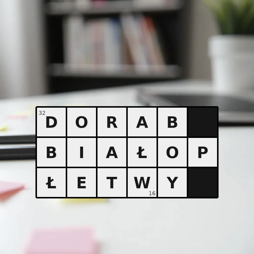 Zawiera litery: A, A, B, B, D, E, I, O, O, P, R, T, W, Y, Ł, Ł