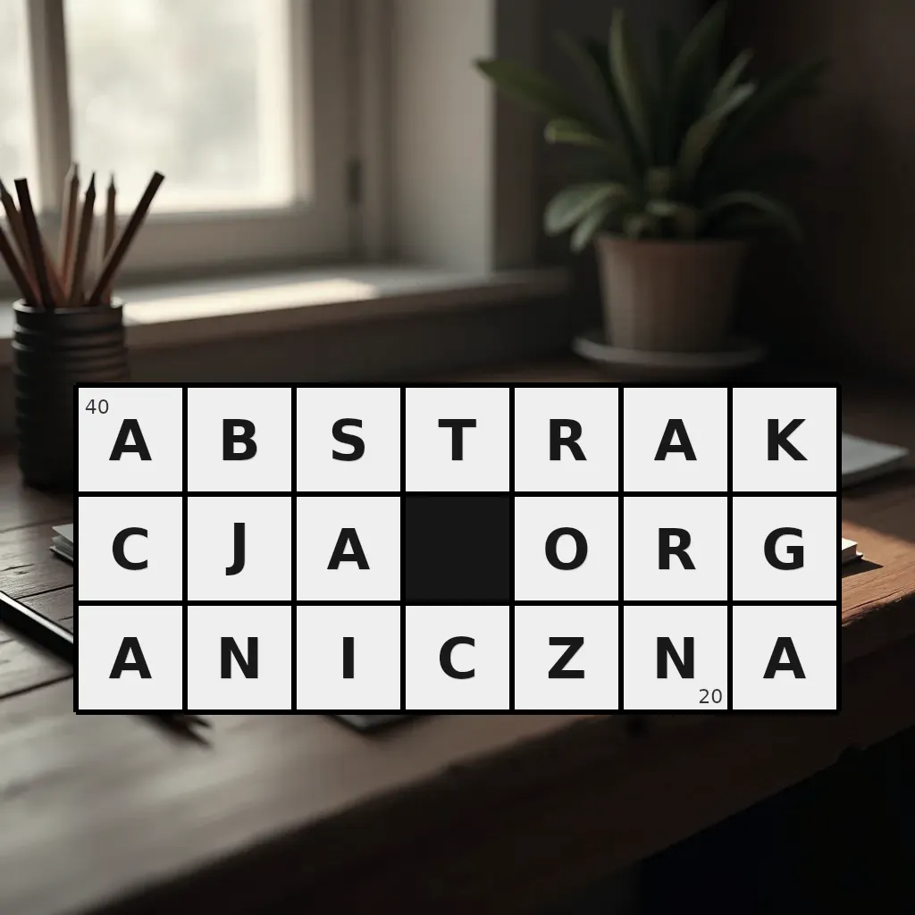 Słowo „abstrakcja organiczna” ma 20 znaków (bez spacji i łączników).