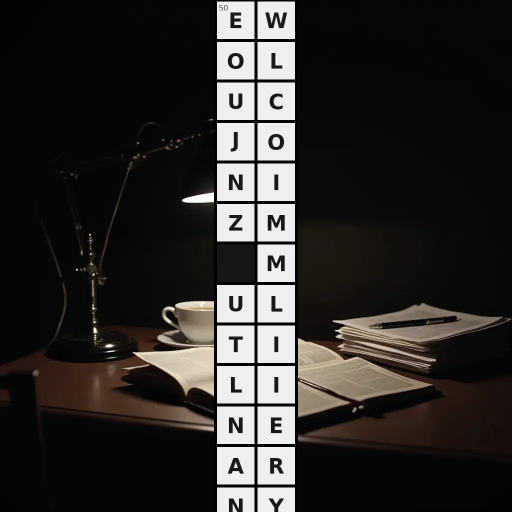 Zawiera litery: A, C, E, E, I, I, I, J, L, L, L, M, M, N, N, N, O, O, R, T, U, U, W, Y, Z