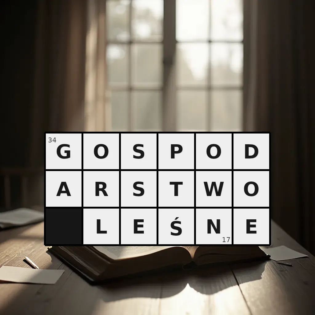 Słowo „gospodarstwo leśne” ma 17 znaków (bez spacji i łączników).