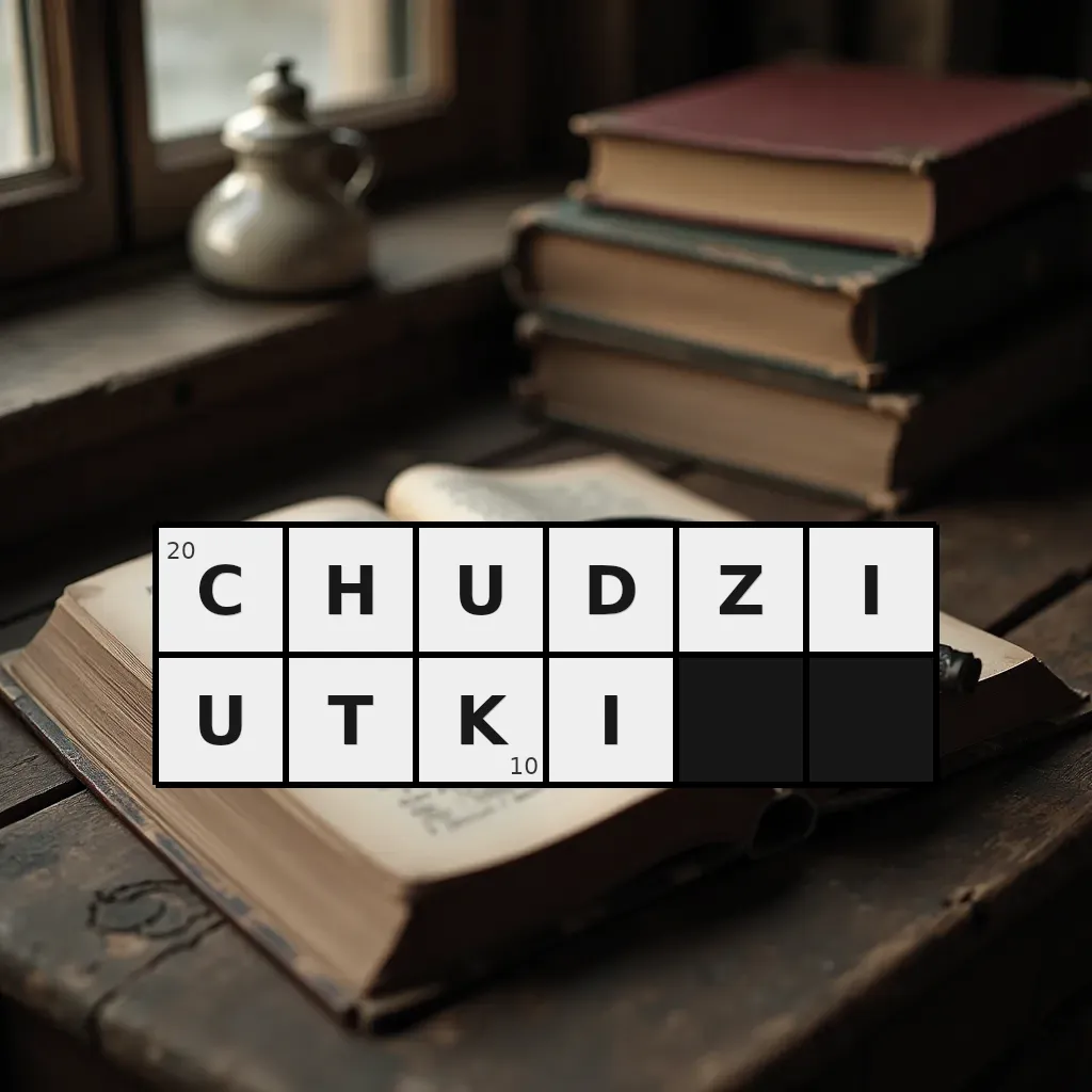 Słowo „chudziutki” ma 10 znaków (bez spacji i łączników).