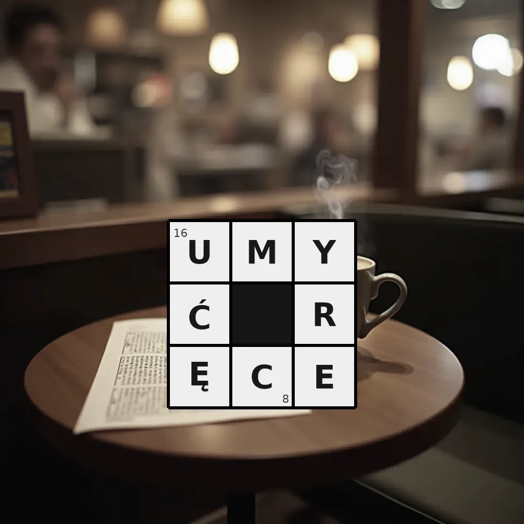 Słowo „umyć ręce” ma 8 znaków (bez spacji i łączników).