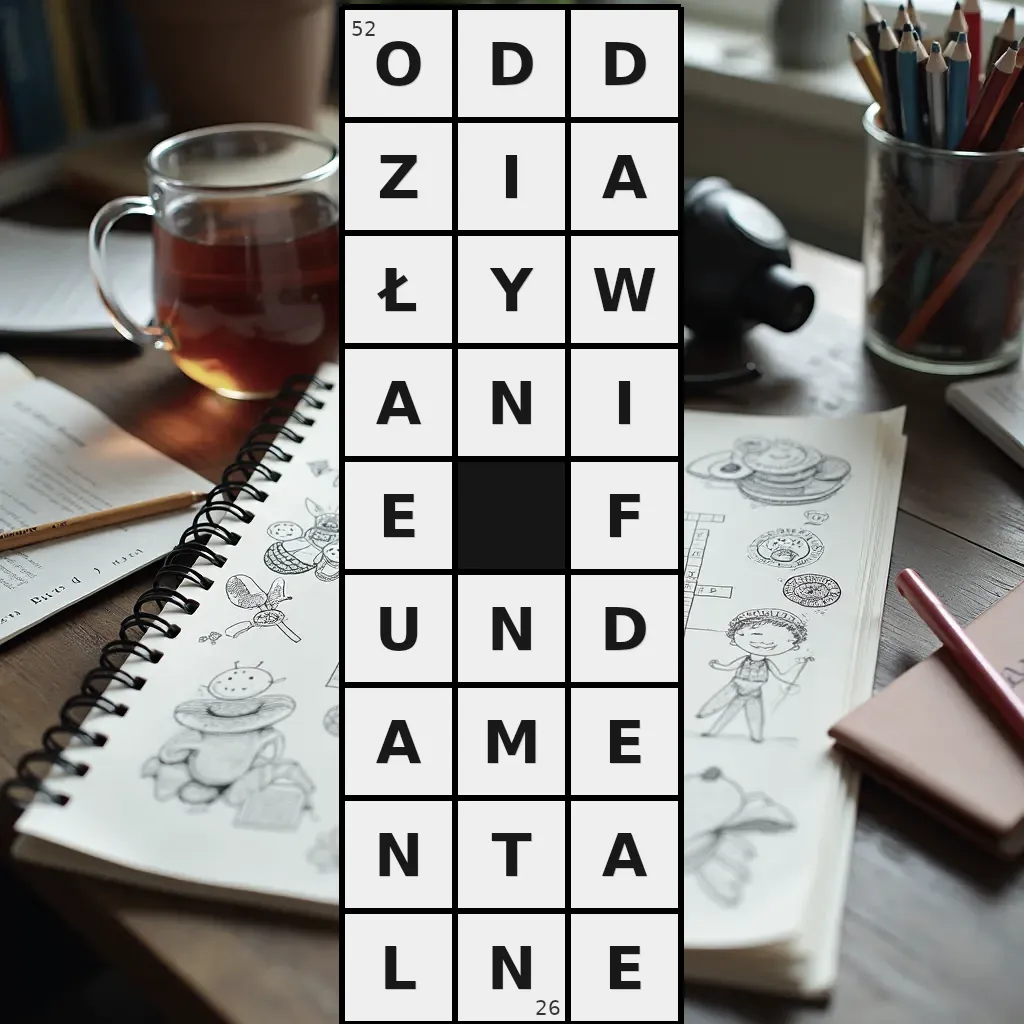 Słowo „oddziaływanie fundamentalne” ma 26 znaków (bez spacji i łączników).