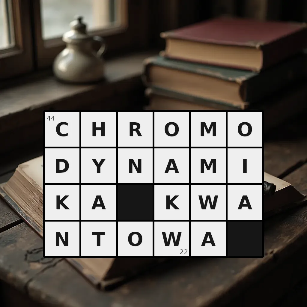 Słowo „chromodynamika kwantowa” ma 22 znaki (bez spacji i łączników).