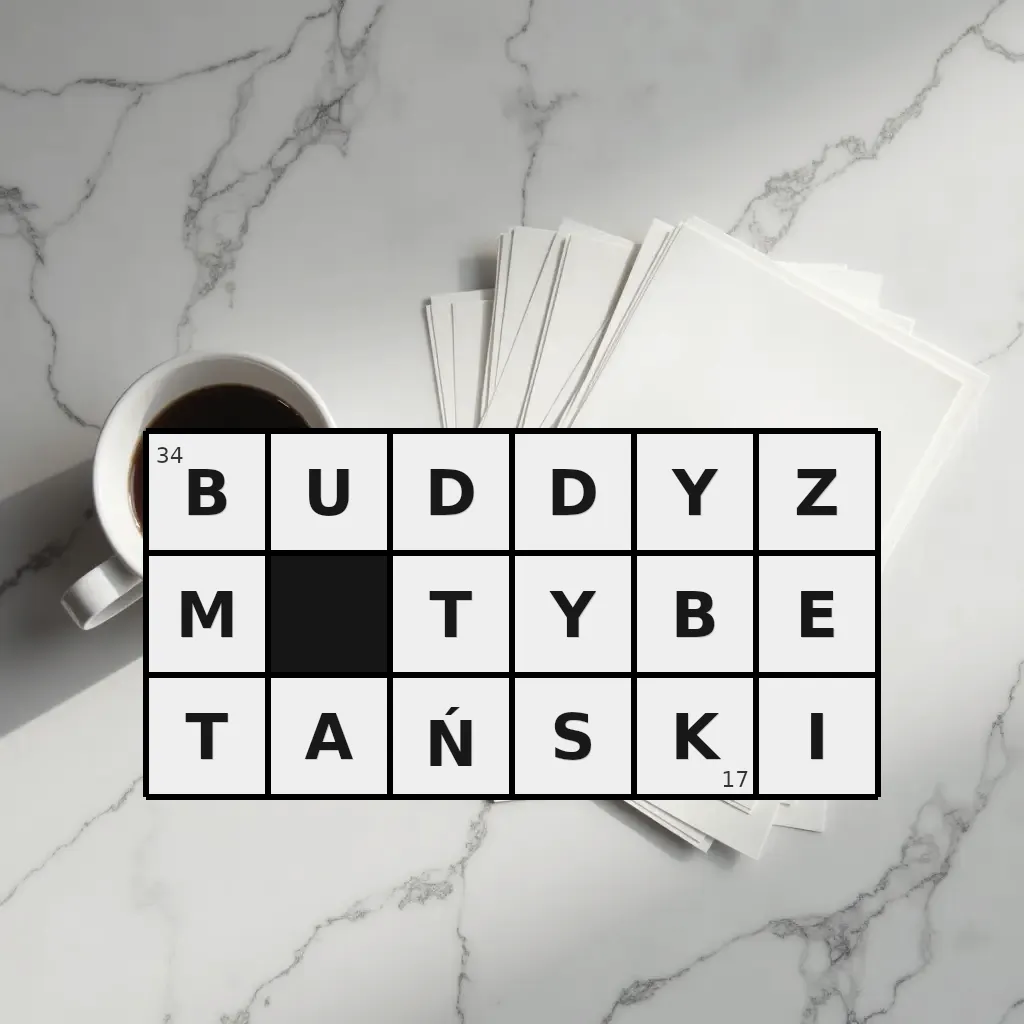 Słowo „buddyzm tybetański” ma 17 znaków (bez spacji i łączników).