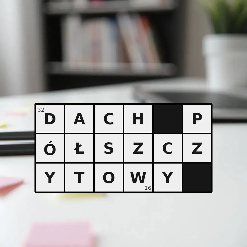 Słowo „dach półszczytowy” ma 16 znaków (bez spacji i łączników).