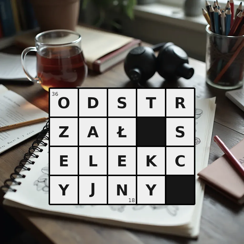 Zawiera litery: A, C, D, E, E, J, K, L, N, O, R, S, S, T, Y, Y, Z, Ł