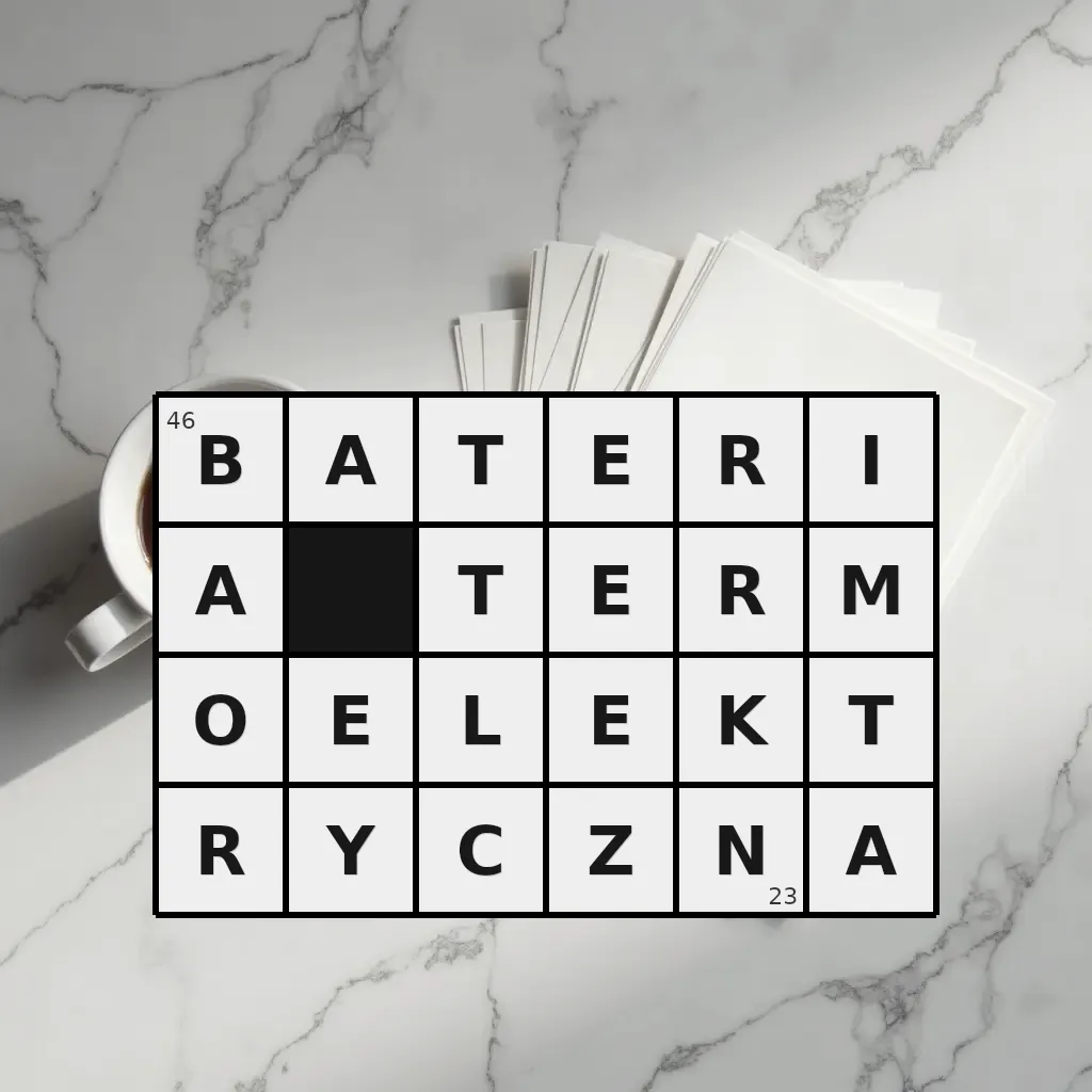 Słowo „bateria termoelektryczna” ma 23 znaki (bez spacji i łączników).
