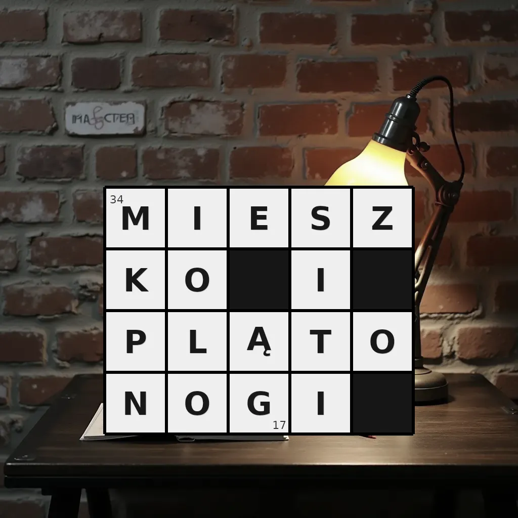 Słowo „mieszko i plątonogi” ma 17 znaków (bez spacji i łączników).