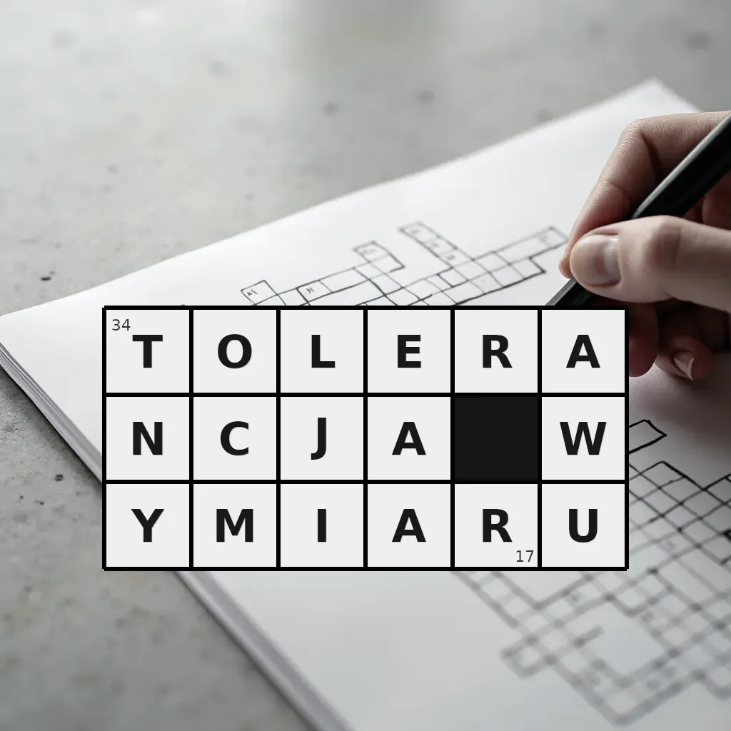 Słowo „tolerancja wymiaru” ma 17 znaków (bez spacji i łączników).