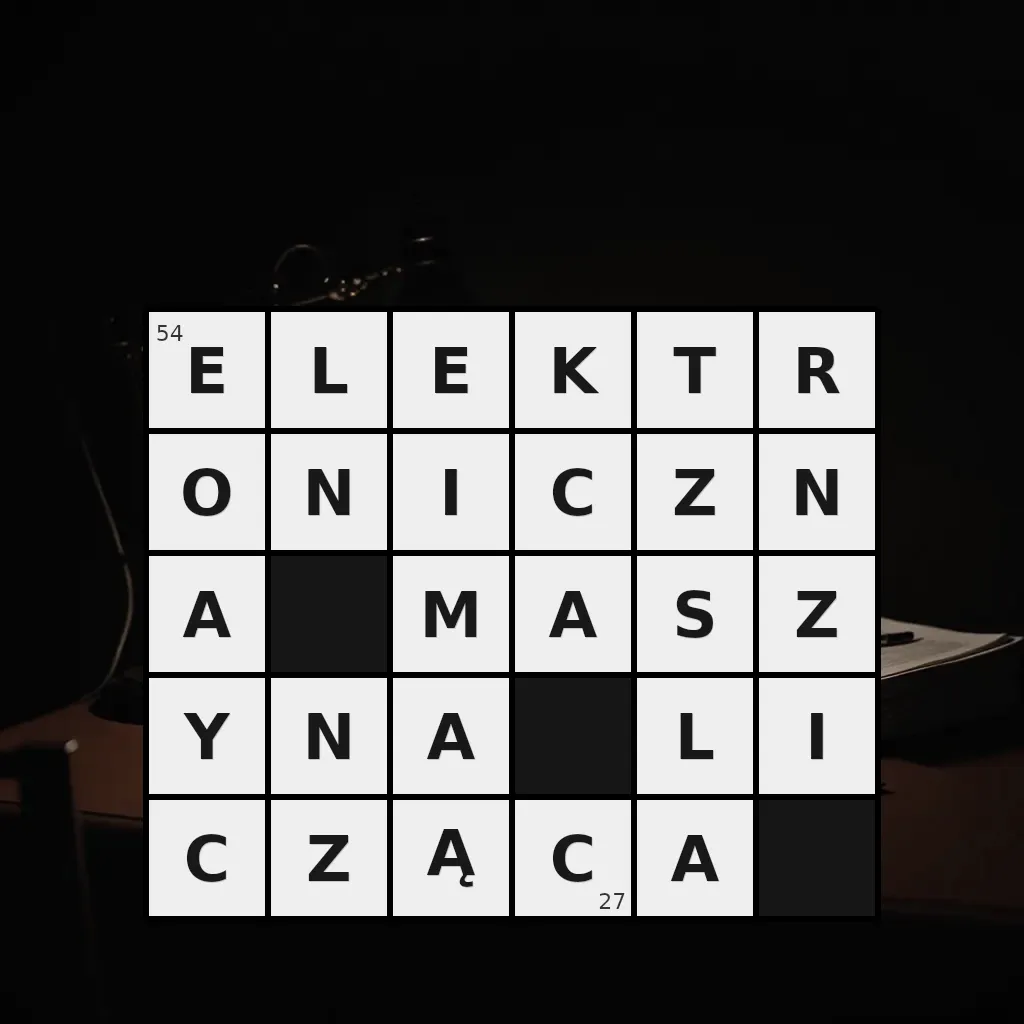 Słowo „elektroniczna maszyna licząca” ma 27 znaków (bez spacji i łączników).