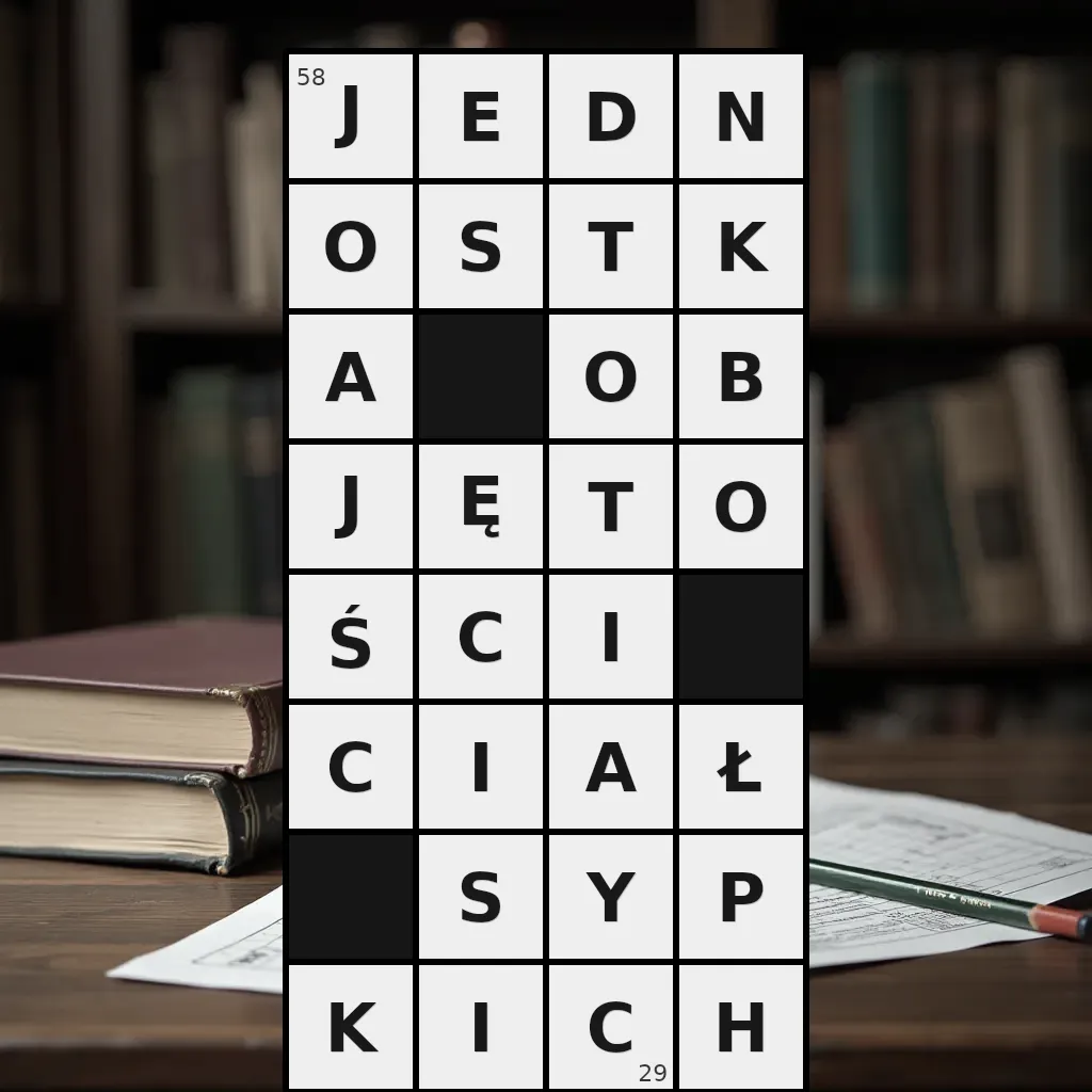 Słowo „jednostka objętości ciał sypkich” ma 29 znaków (bez spacji i łączników).