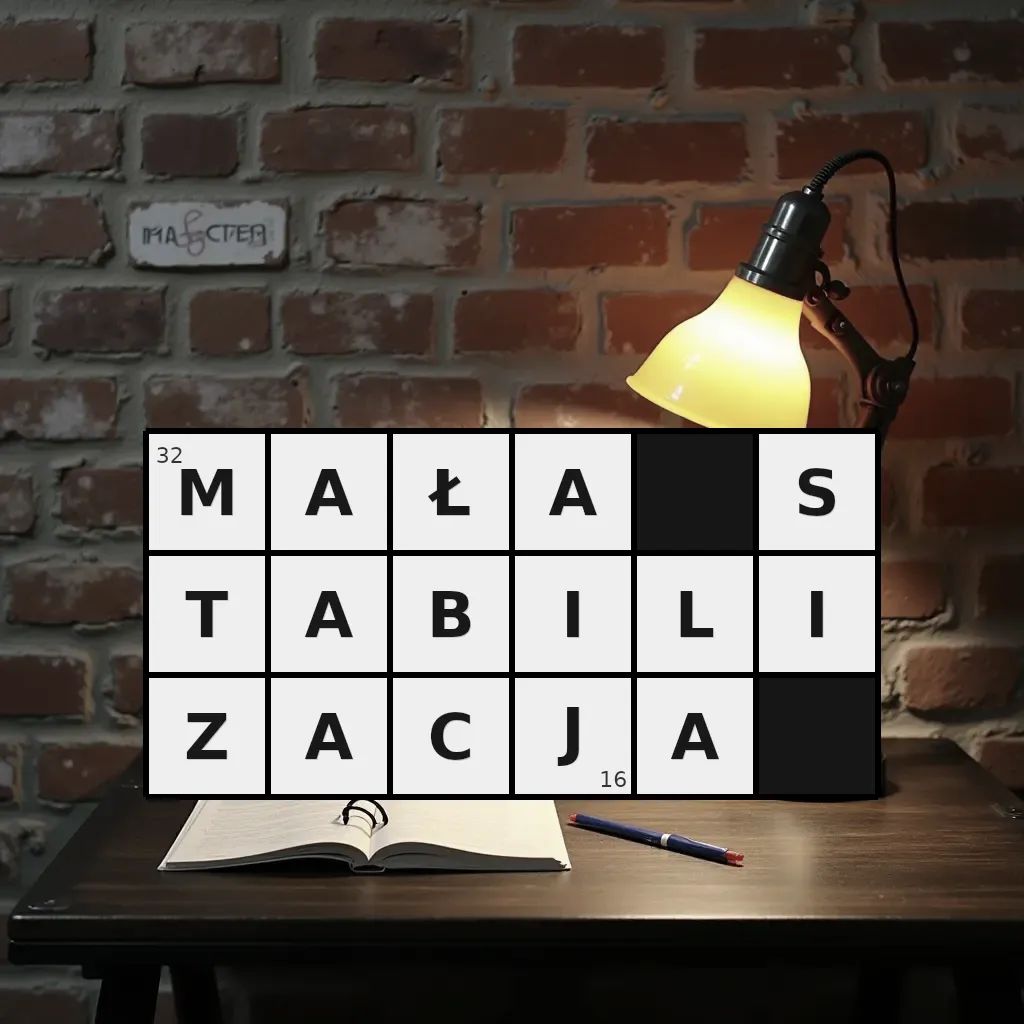 Słowo „mała stabilizacja” ma 16 znaków (bez spacji i łączników).