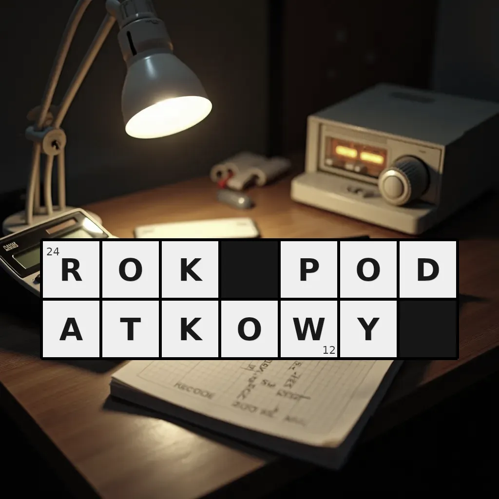 Słowo „rok podatkowy” ma 12 znaków (bez spacji i łączników).