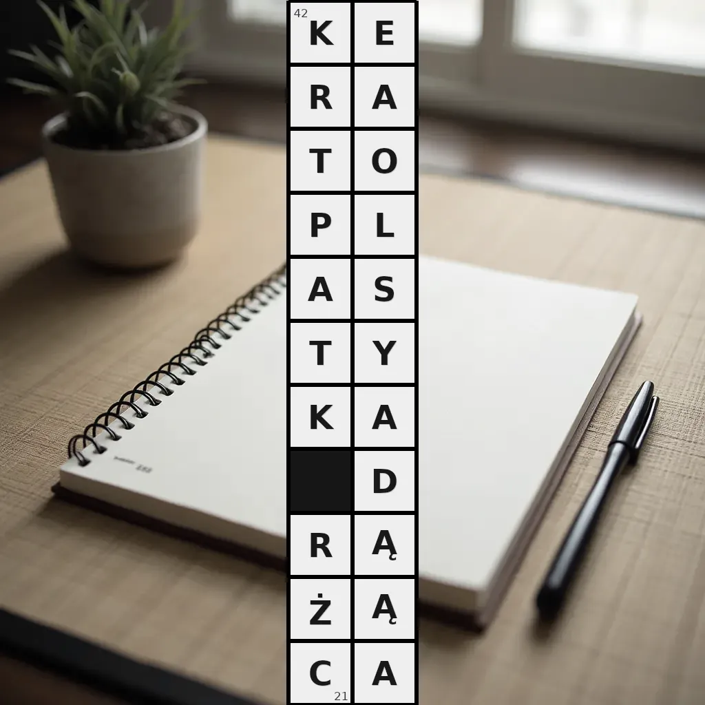 Słowo „keratoplastyka drążąca” ma 21 znak (bez spacji i łączników).
