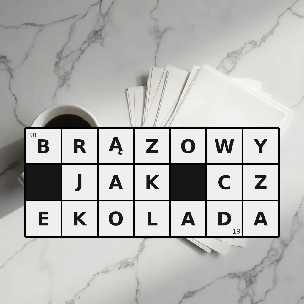 Słowo „brązowy jak czekolada” ma 19 znaków (bez spacji i łączników).