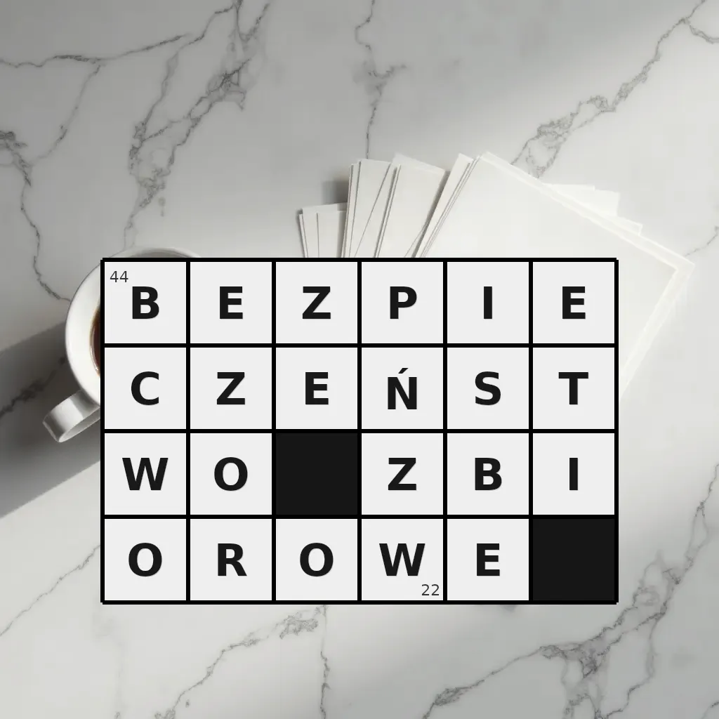 Słowo „bezpieczeństwo zbiorowe” ma 22 znaki (bez spacji i łączników).