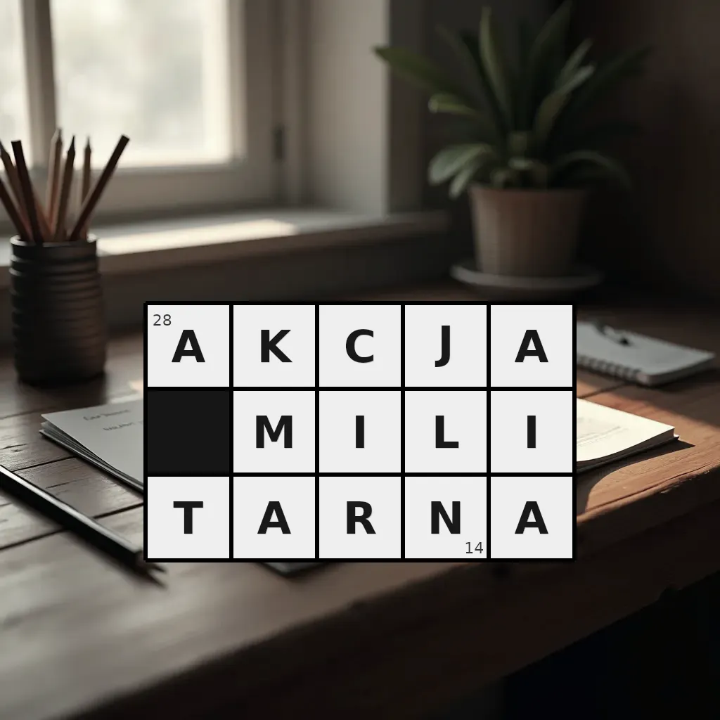 Słowo „akcja militarna” ma 14 znaków (bez spacji i łączników).