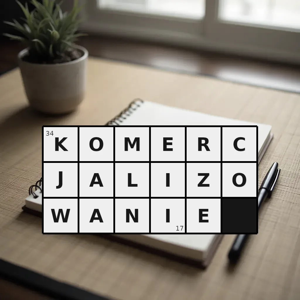 Słowo „komercjalizowanie” ma 17 znaków (bez spacji i łączników).