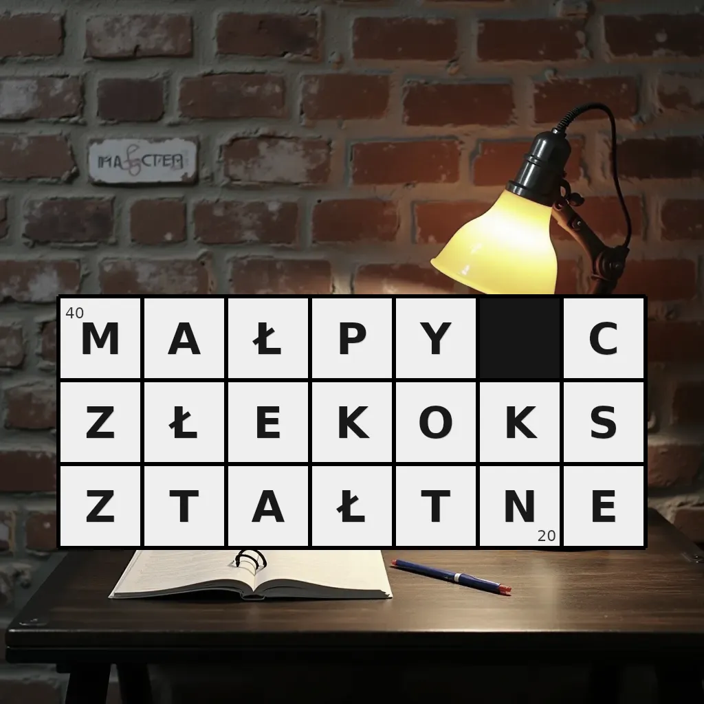 Słowo „małpy człekokształtne” ma 20 znaków (bez spacji i łączników).