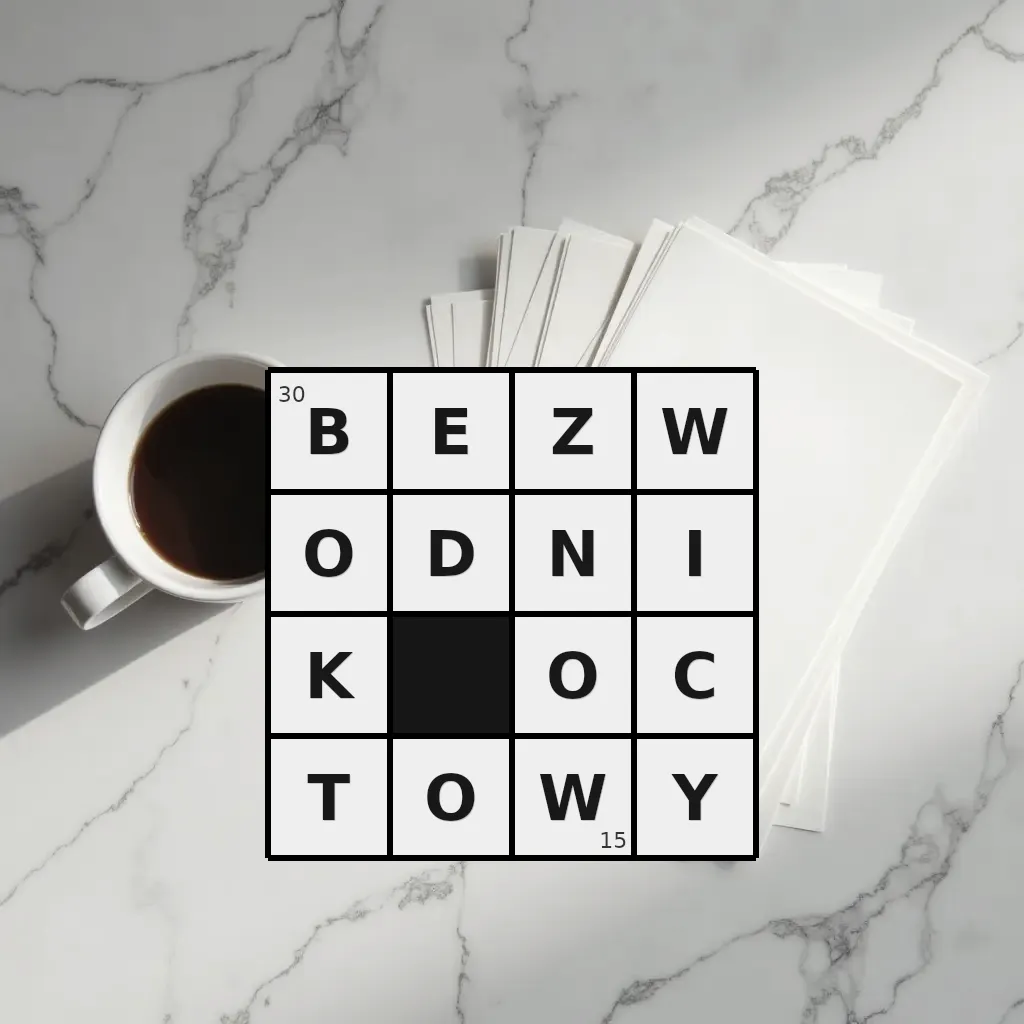 Słowo „bezwodnik octowy” ma 15 znaków (bez spacji i łączników).
